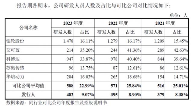 此外,报告期结束时,公司R&D人员数量分别为 379 人、395 人、482 人类、R&D人员的比例分别是 8.38%、8.90、9.07%,低于公司平均值的企业 25.01%、25.84%、22.99%。