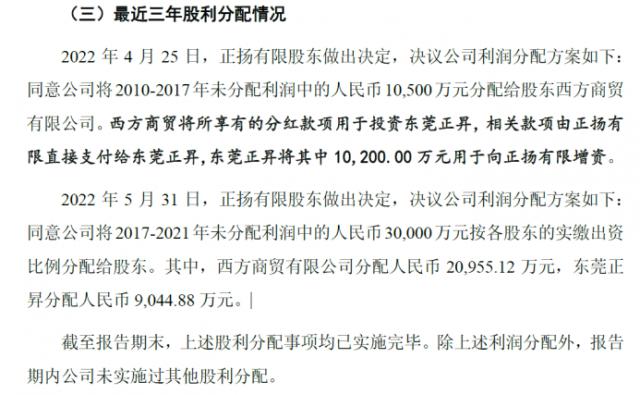 正扬科技“清仓式分红”每年分为4亿元,近三年净收入下滑承压。