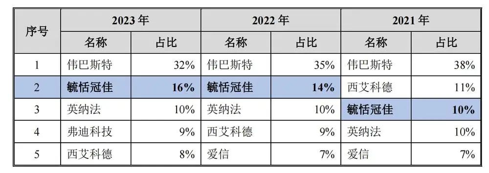 根据公开数据,2023 231.10年度玉恬冠佳汽车天窗销售。 据头豹研究院报告,万台,2023 年玉恬冠佳已成为中国汽车天窗市场第二大供应商,市场份额为 16%,也是唯一一家位居中国天窗市场前五的本土企业。