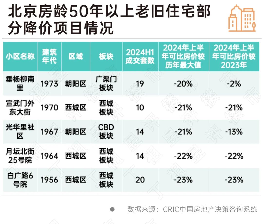 根据北京2024年上半年成交的二手房小区房价与房龄交叉对比数据,房龄越新,房价上涨的可能性越大。