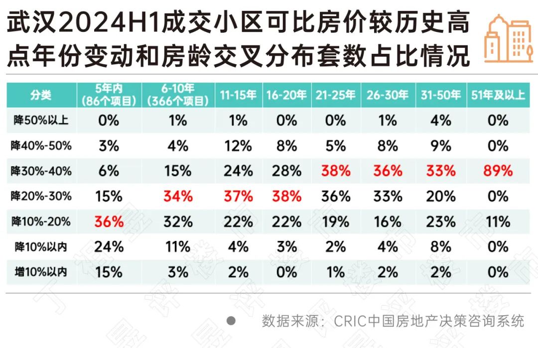 不同房龄的武汉减价中心集中在2-4成,5年内,新房超过30%的小区减少了10%-20%。;10年内,34%的次新房价格下跌20%-30%,54%的住宅价格下跌20%以上。