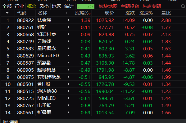 盘面上,钛白粉概念股集体上涨,惠云钛业上涨10%以上,金浦钛业上涨。星闪概念股震荡走高,云中物中,辰奕智能涨停。游戏股盘里拉涨,新迅达,国旅联合,浙版媒体涨停,华谊兄弟涨幅超过10%。银行股保持强势,中、农、工、建四大行继续创历史新高。在下跌方面,煤炭股集体调整,兖矿能源等跌幅超过5%;轨交概念股跌幅居前,鼎汉技术跌幅接近10%。板块方面,钛白粉、星闪概念、电子竞技、银行等少数板块上涨,轨交、煤炭、教育、油气等板块跌幅居前。