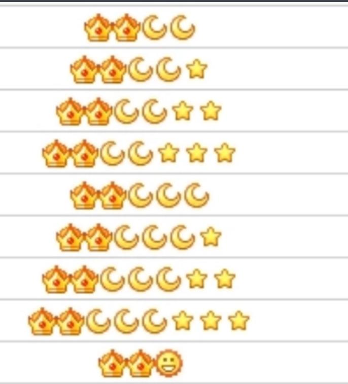 四星升级为月亮,四星升级为太阳,四星升级为皇冠。