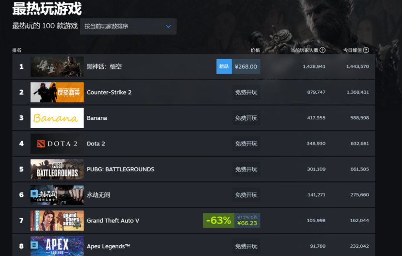 在游戏上线的第一天,《黑神话:悟空》在Steam平台上的表现特别引人注目。仅Steam单平台上线不到一个小时,就有超过百万的在线玩家同时上线。