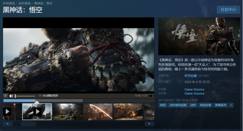 对许多玩家而言,对《黑神话:悟空》的期待和关注已经过去了很多年。《黑神话:悟空》于2018年2月底正式立项。2020年8月20日,该游戏首次公开了13分钟的实机演示视频,首次震惊业界,哔哩哔哩播放量超过5700万次。随后,游戏科学宣布于2023年12月正式发布。《黑神话:悟空》于2024年8月20日全球解锁,正式上线。