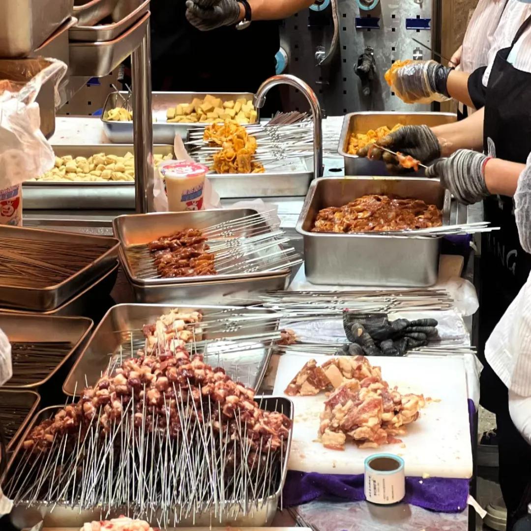 在杭州,公众评论收录了9年的“丁丁小串摊烧烤”。以前是一般的点餐和厨房烘焙方式,但从去年开始就调整成了今天的摊位烧烤。