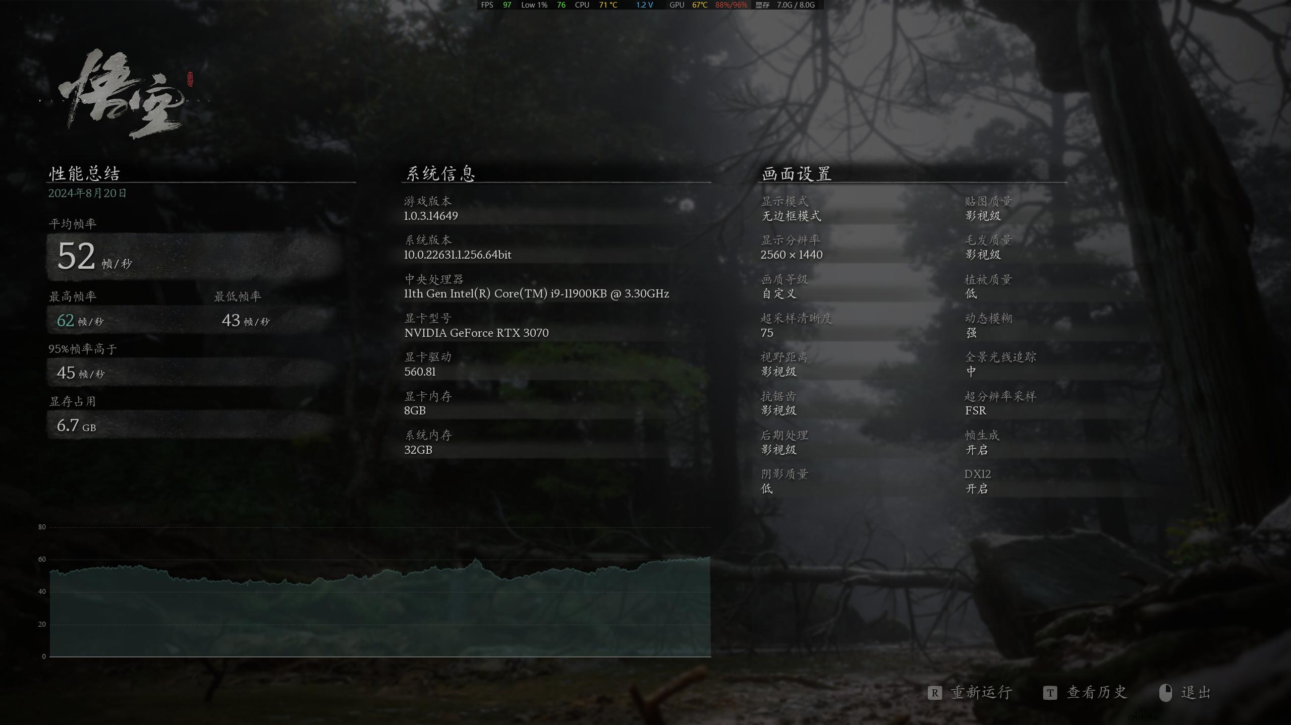 总体来看,RTX 3070虽然是三年前的显卡,但还是老了,坚强了。它的性能足以控制2K分辨率的黑神话:悟空,不需要打开光追。,对1080P分辨率来说,这更是没有压力。