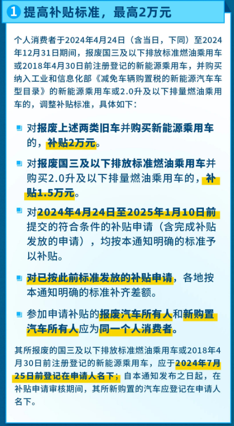 近日,商务部等7个部门正式发布《关于进一步做好汽车以旧换新工作的通知》,从提高补贴标准、扩大补贴范围、增加资金支持等方面,新一轮汽车以旧换新正式启动。,并加大推动汽车以旧换新的力度。