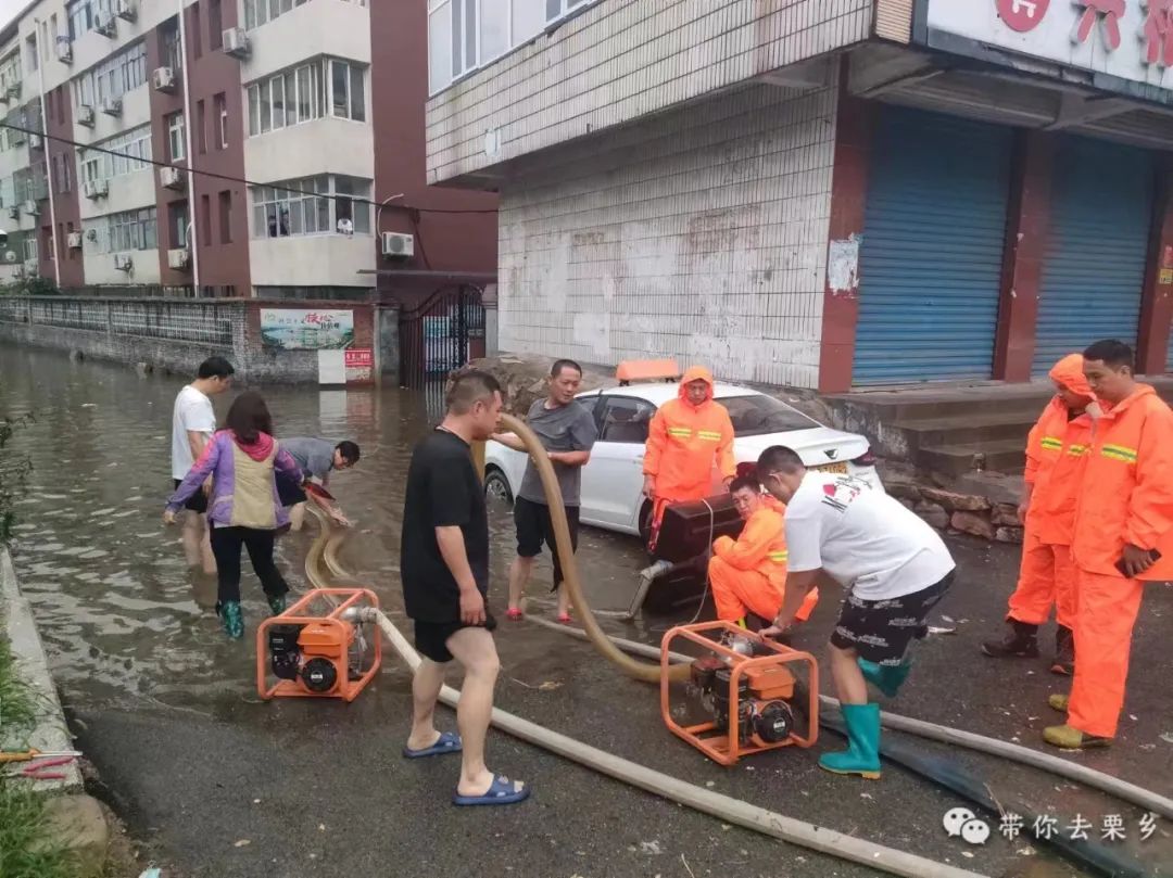 收到危险后,栗乡街道应急队员迅速出动,与消防队员一起,设置泵、下管、抽水,不断移动泵换点抽水...4个小时后,天空从黑暗变成白天,工作人员不眠不休,与时间赛跑,与降水一起抓住时间,最终消除了居民的安全威胁。