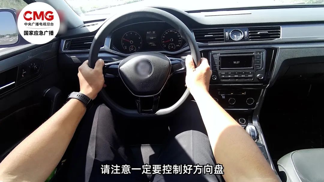 松开加速踏板,换成空档,打开危险报警闪光灯。左手握住方向盘,左手直接拉起手刹,或者抓住电子停车。