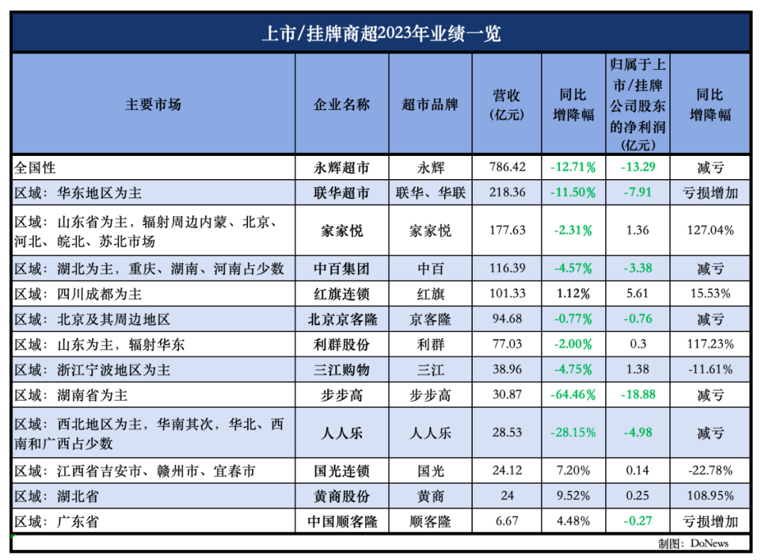 消费者流失,传统超市的表现一言难尽。根据DoNews的不完全统计,目前已有13家传统超市上市/上市。除了永辉超市在全国各大地区的良好发展,其他都是区域品牌。