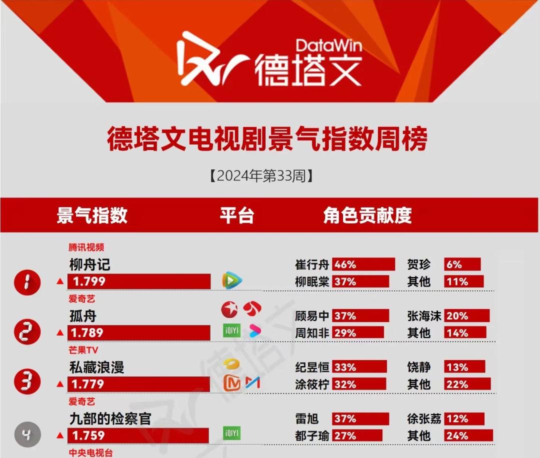 更行业端的观察是:根据德塔文数据发布的剧集周报,《柳舟记》以1.799的景气指数登顶,其次是《孤舟》《私人浪漫》《九部的检察官》,同在1.7。 阵营。奥运会期间,德塔文景气指数《长相思2》《唐代诡事录西行》达到2。 、1.8 。