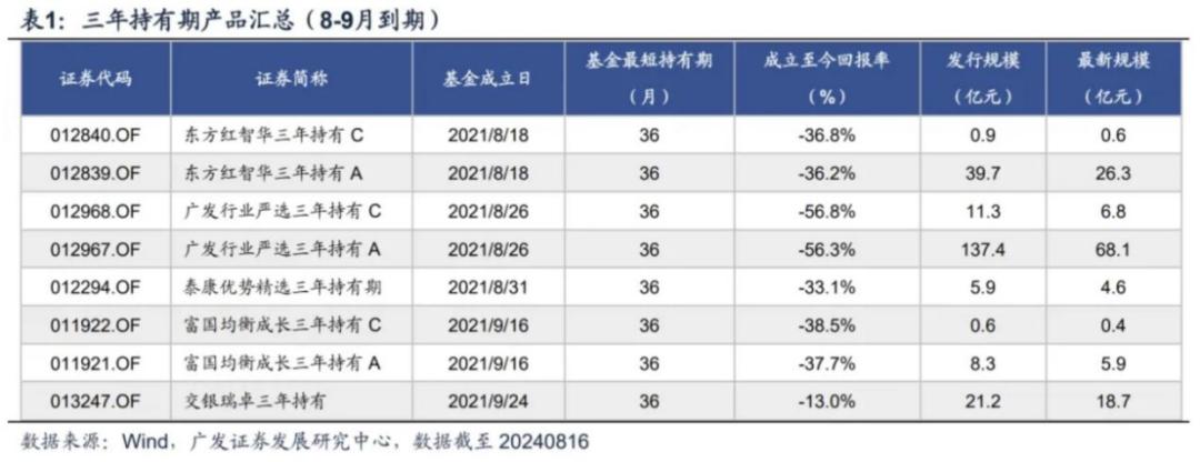 根据广发证券战略团队的最新报告,在2021年公募发行高峰期,建立了一批持有期三年的商品,今年8-9月将面临集中期满,可能会放大市民赎回和机构减持的压力。
