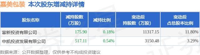 嘉美包装8月21日发布公告,其股东减持股份693万股