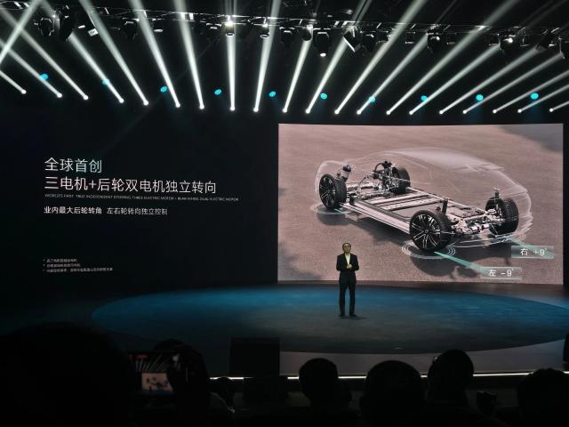 第一,仰望上面那个四电机架构易四方大伙应该听说过哈,就是可以让人仰望。 U8 原地掉头的那个。这个系统, Z9 居然用上了。。稍微阉割后版本:易三方,即前轴单电机后轮双电机的三电机结构。