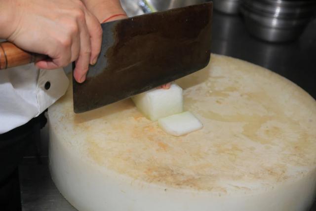 1. 冬瓜去皮和果肉,切成 2 一个硬币厚度方块;