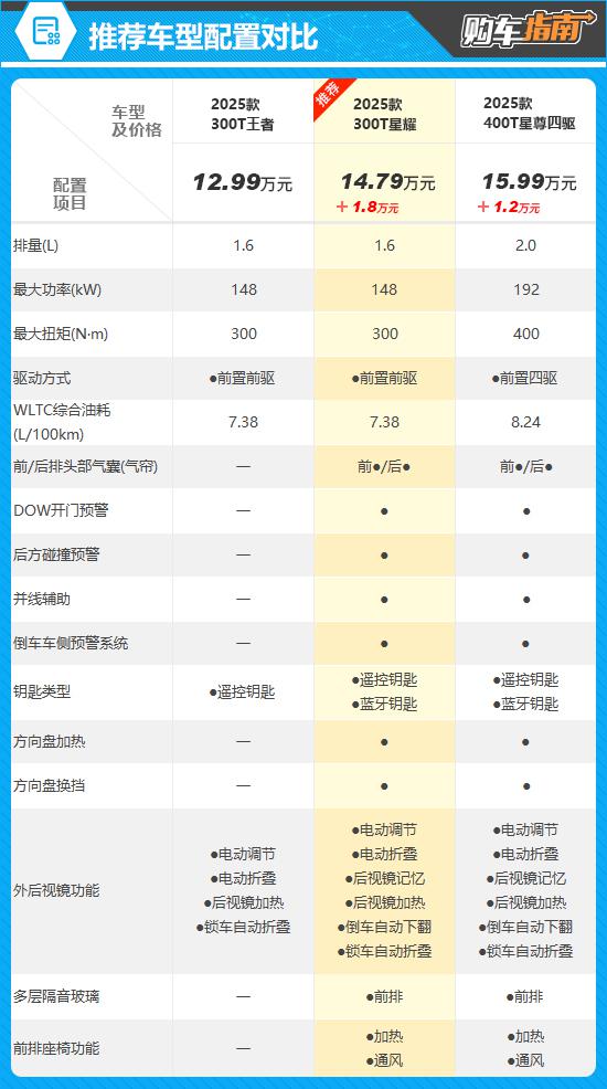 所以总的来说,如果你关注的话 2025 星途凌云,那么 300T 值得你优先选择的星耀。