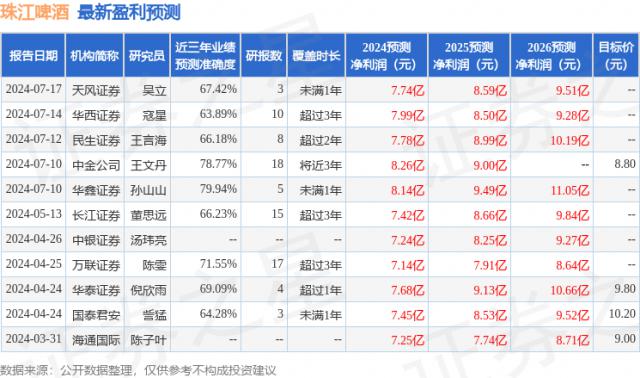 孙山山山华鑫证券有限公司 , 廖望州最近研究了珠江啤酒,并发布了一份调查报告《公司事件评估报告:结构升级趋势明显,利润弹性释放》。本报告对珠江啤酒进行了买入评级,目前股价为 8.48 元。