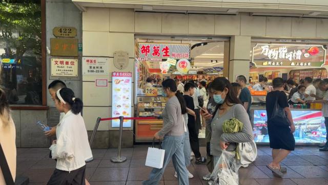 今年南京路步行街多家老字号现烤新口味月饼纷纷亮相。