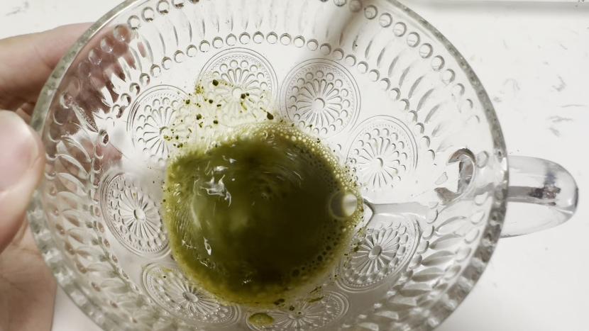 1、将40克牛奶加入8克抹茶粉中,少量多餐搅拌均匀,使茶粉与牛奶充分混合。