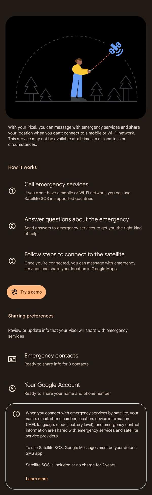 谷歌客户通过卫星通信获得紧急服务救援时, Pixel 9 与紧急服务提供商共享客户姓名、电子邮件、联系电话、位置、设备和紧急联系人的详细信息,方便用户获得救援。
