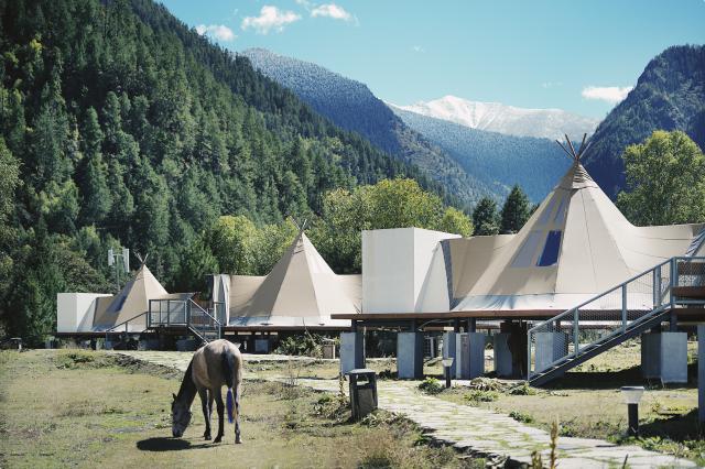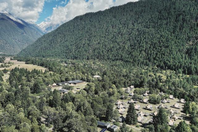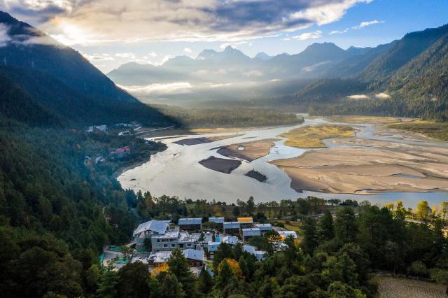 而且松赞波密山居便被雨林环抱,被雪山环抱,冰川,河谷,森林,峡谷,河滩…所有的客厅、客房,都面朝有水有山的景观面朝风,就像把自己放进画中一样。即使什么都不做,也有一种前所未有的度假感。