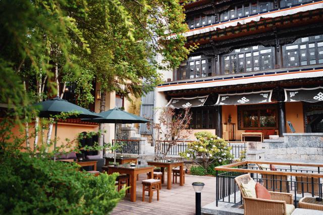 在喧嚣的古城里也没有选址,但是酒店去香格里拉的精神坐标松赞林寺,步行只需2分钟。
