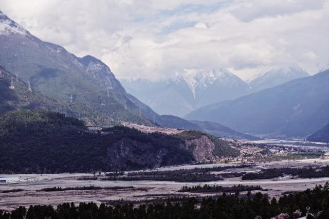 面朝贡当神山,你可以俯瞰壮观的怒江第一湾。连绵不断的雪山在你面前一字不差地铺开,金沙江奔流产生的白噪音在你耳边传来。