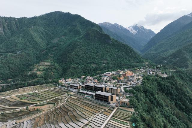丙中洛更深入怒江大峡谷,酒店背靠雪山和佛寺,面朝峡谷梯田。尽管交通不便隐藏了她的美丽,但也更能说明这个松赞的价值。