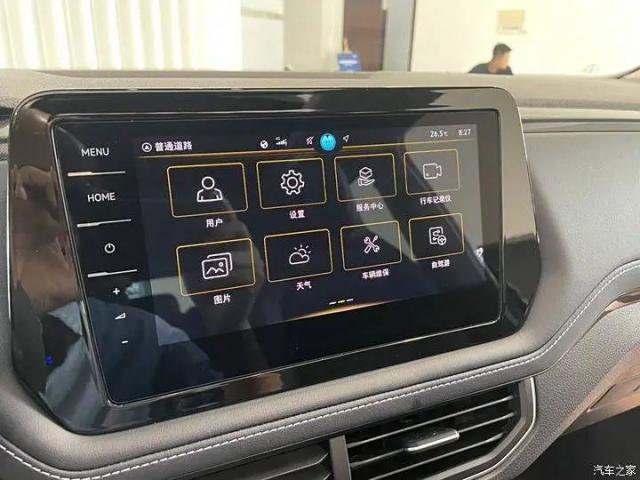 在内饰部分,新车配备了全液晶仪表盘和三辐多功能方向盘。中控中间采用半嵌入式中控多媒体显示屏,中控台通道区保留了一些物理功能按钮和机械换挡杆。
