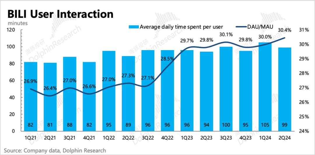 第二季度用户增长进一步放缓,用户粘性DAU/MAU环比持平,整体表现低于市场预测。