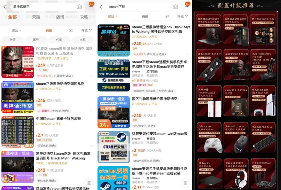 从淘宝steam代装的销量就可以看出这一点。实际上,现在的高中生和大学生都有很大一部分玩家下了渠道服,装了假steam。与此同时,电子商务平台的数据显示,RTX40系列显卡笔记本的交易量同比增长100%,计算机组件的交易量同比增长120%。说明新玩家从设备到平台从0到1的激活过程,也意味着一扇门的展开,反映了玩家对高质量游戏内容的渴望,也预示着国内单机游戏市场迈出了非常微妙的一步。