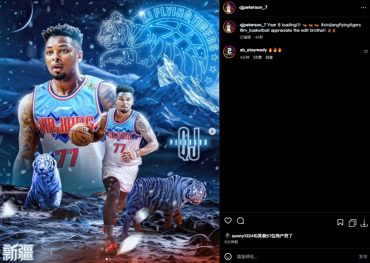 此前,皮特森更新了个人社交媒体,宣布本赛季加入新疆男篮。去年夏天,他们还从吉林男篮获得琼斯的优先续约权。