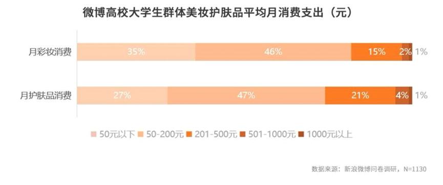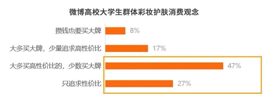 虽然大学生普遍缺乏稳定的经济收入来源,但微博大学生的美容护肤品支出在一定程度上达到了中高端消费水平,因为他们关注自己的颜值,取悦自己的消费观念。