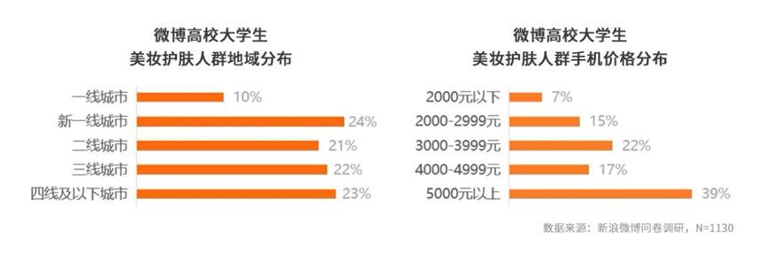 大学生美容护肤群多分布在高线城市,消费能力相对较高。