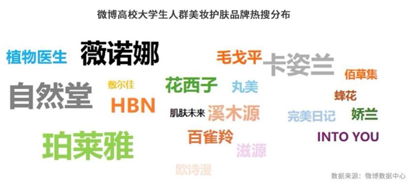 大学生关注的美容护肤品牌更加丰富,其中性价比相对较高的廉价品牌和符合中国人需求的国潮品牌的搜索热度直线上升,引起了大学生的关注。
