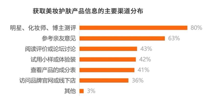 大学生美容护肤品信息渠道分布广泛,在线KOL评价排名第一,线下更喜欢与亲朋好友交流分享。