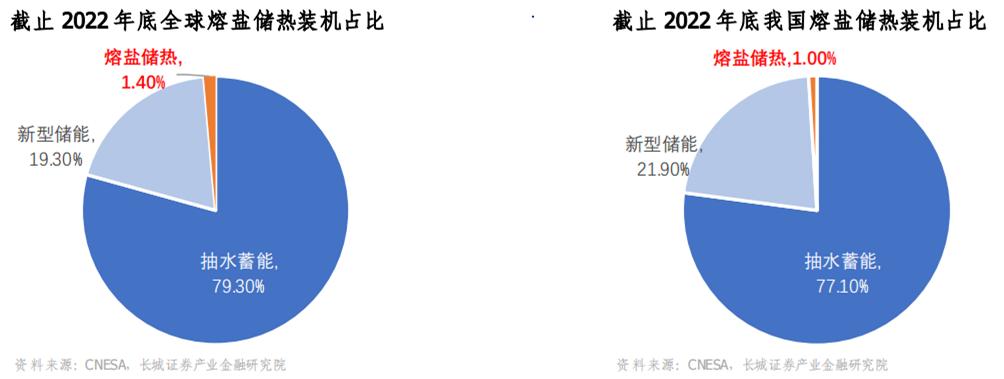 据CNESA统计,截至2022年底,我国熔盐储能装机量仅占储能市场累计装机量的1%,全球仅占1.4%。考虑到大规模长期储能将是储能市场下一阶段的发展方向,熔盐储能将有广阔的增长空间。鉴于熔盐储能在光热领域的广泛应用,其未来几年的发展速度将主要取决于光热市场的发展前景。