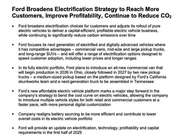 此外,福特还计划减少对纯电动汽车的资本支出,从之前的预算来看。大约30%的40%降到30%。