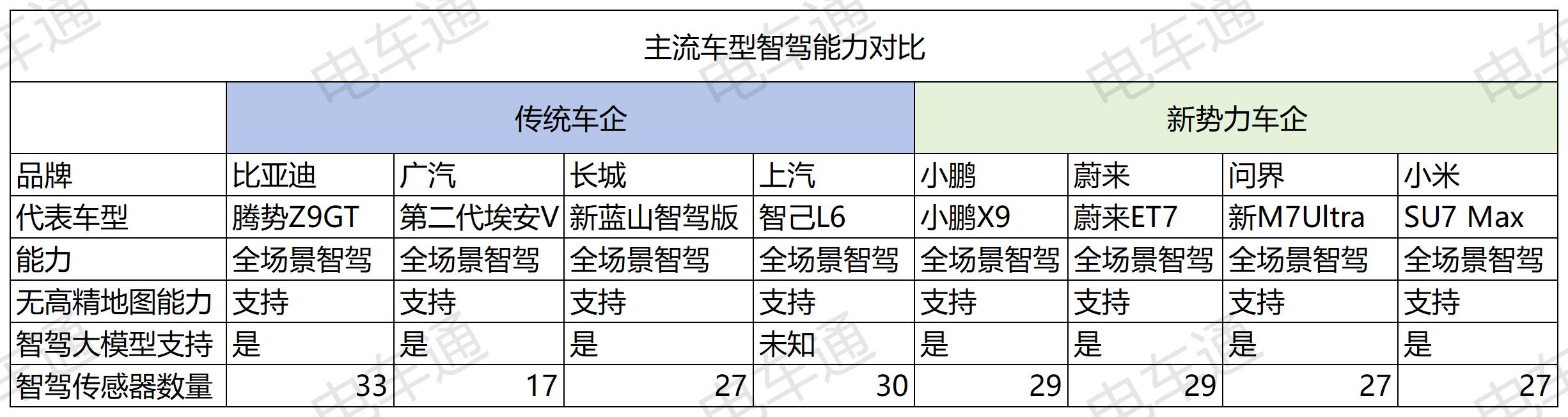 对于另一个技术指标“智能驾驶大模型”,传统汽车公司不会落后于多少新的力量汽车公司。比如SEE智能驾驶大模型应用于长城新蓝山智能驾驶系统,比亚迪和广汽的智能驾驶技术都有大模型。可以看出,传统汽车公司在智能驾驶方面的底层技术已经追平了新力量汽车公司的主流水平。当然,与小鹏和华为的下一代智能驾驶相比,存在一定的差距,但目前实际体验(在可用的情况下)并没有太大的差距。