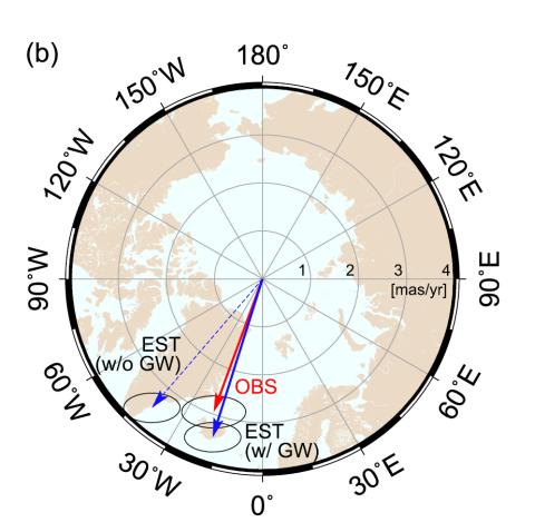 据研究,从1993年到2010年,人类提取的地下水总量约为2.15万亿吨,这些地下水排入海洋后,导致全球海平面上升6毫米。更重要的是,这些提取的地下水大部分来自北半球地区——北美、印度、中东等。这些水最终可以被视为平均分布在全球海洋中,这自然导致了明显的极移,平均每年速度为4.36厘米。近年来,极点已经向东经64.16°已经移动了78.48厘米。