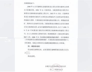 2023年4月9日,永城市公安局永煤矿区派出所发布的信息显示:1996年9月,庄振峰从黑龙江省牡丹江省林业局海洋林业局建设工程公司转移到郑州矿务局,作为工人,然后被安排在超化煤矿工作。2006年9月调出,后档案转移到永煤集团新桥煤矿。经核实,确认吕某理替代了庄振峰档案信息人员。