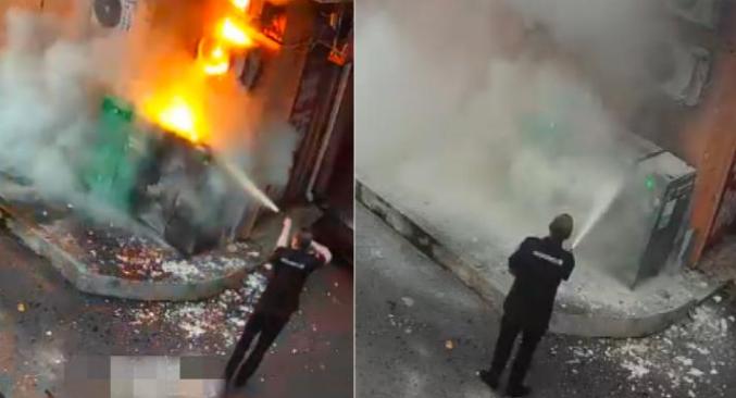 原标题:“电动自行车电池充电柜突然起火,社区微型消防站立大功”