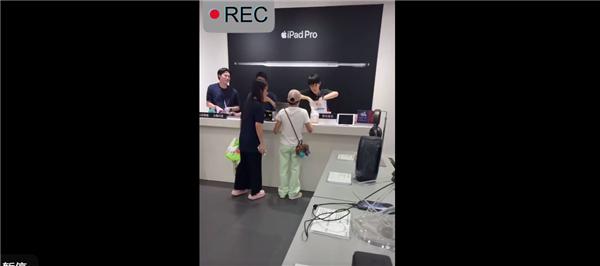根据网民晒出的照片,全红柒在一家苹果店的柜台前等着,然后从店员手中接过货物。