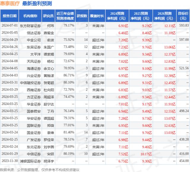 根据近三年发布的研究报告数据,兴业证券黄翰漾研究员团队对该股进行了深入研究,近三年平均预测准确度高达 预测86.71% 2024 年度归属净利润为利润 6.95 十亿,根据现价转换预测。 PE 为 49.71。
