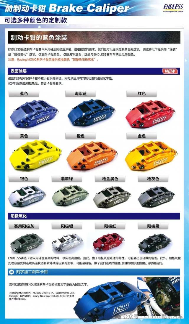 为保证美观和用户需求,当然,ENDLESS 卡钳可以定制各种喜欢的颜色,同样耐高温的漆料也可以使用。