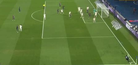 第 58 一分钟,边卫连线,门德斯传中,阿什拉夫腾空射门,巴黎 4-0
