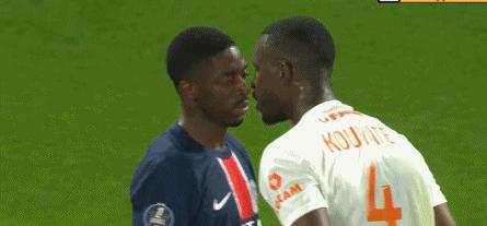 第 56 几分钟后,登贝莱和库亚特顶牛,随后双方发生小规模冲突。