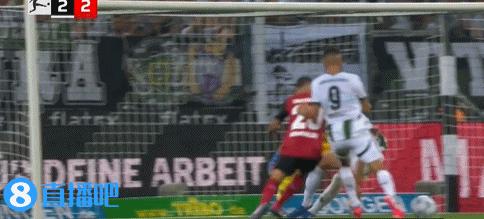 第 67 博尼法斯单挑门兴防线,连续扣球后低射打偏。↓
