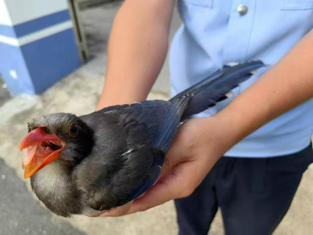 ● “萌”禽卡车头,警方热心帮助!近日,宁都县公安局蔡江派出所民警在辖区内徒步巡逻时,发现一只“怪鸟”卡在汽车格栅处。 警察救出后,交给林业局专业人员进行治疗,经鉴定,“怪鸟”名为红嘴蓝鹊,是国家“三有”保护动物。